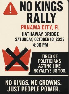 We must continue to support our democracy and keep the resistance alive! The Democratic Women’s Club is hosting the next peaceful No Kings Protest on October 18 aginst the oligarchy and fascism movements taking over our Country.